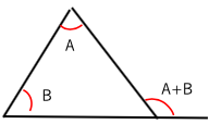 三角形の外角は、外角と隣り合わない2つの内角の和に等しい。