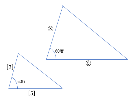 相似な図形とは大きさが違うが、形状が同じモノを指す。(主に三角形)おにぎり形の相似な図形