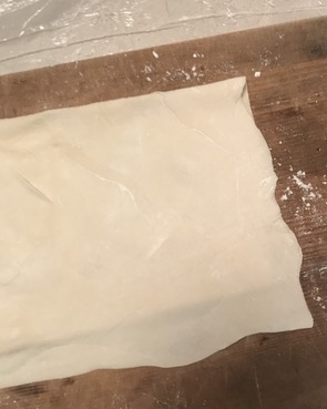 8.生地が3mmの薄さになるまで伸ばす(生地の面積が大きすぎる場合はハサミでカットしても良い)
